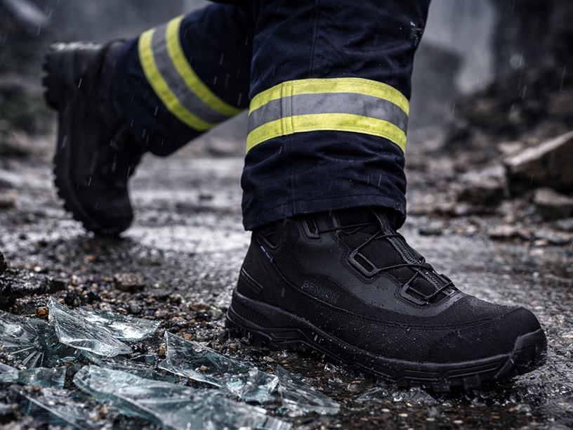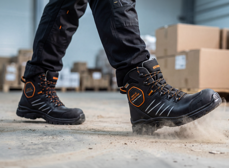 Obuwie robocze i ochronne z trwałych materiałów, wyposażone w elementy zabezpieczające, zapewniające ochronę i komfort przez cały dzień.