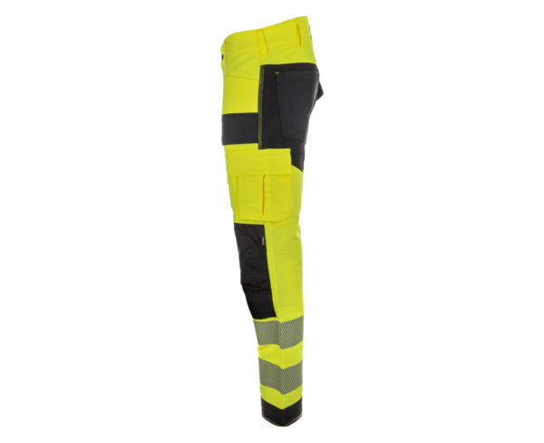 Te certyfikowane spodnie, które spełniają normę klasy wysokiej widoczności 2, są odpowiednie dla pracowników poruszających się po drogach i torach bez ruchu lub w ich pobliżu, gdzie prędkość okolicznych pojazdów nie może przekraczać 60 km/h.