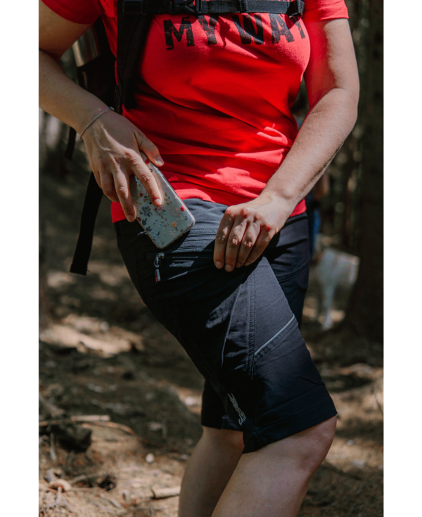 Jednocześnie w gorszych warunkach pogodowych są odporne na wiatr, dzięki czemu do ciała nie przedostaje się tak dużo chłodu. W okolicy kroku i po wewnętrznej stronie nogawek spodenki są dodatkowo potrójnie przeszyte, dzięki czemu szerokie kroki w kierunku przygody lub wymagająca pozycja podczas pracy nie będą stanowić problemu, a spodnie nie rozedrą się tak łatwo.